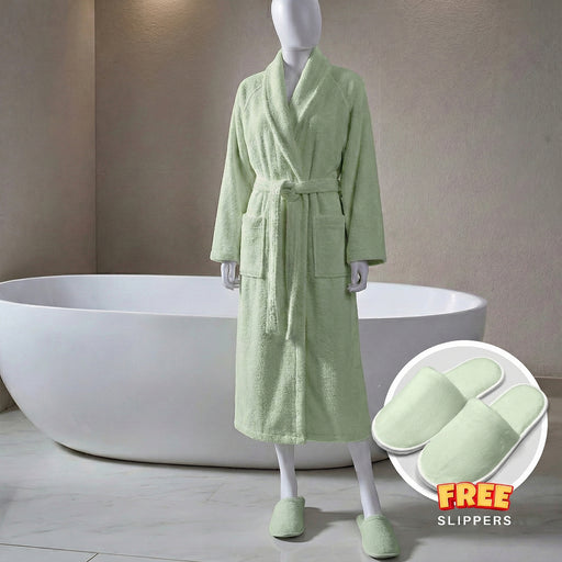 Premium Cotton Mint Green Terry Bathrobe with Pockets, One Size Fits All with Free Bath Slippers