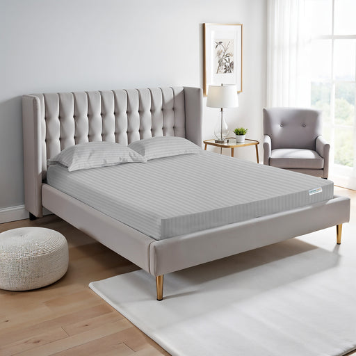 Stripe Fitted Sheet Set Queen 160x200+30cm with Pillowcases Grey