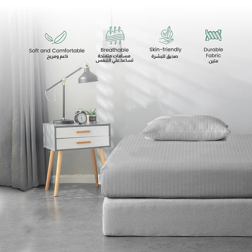 Stripe Fitted Sheet Set Single 90x200+20cm with Pillowcase Grey