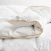 Our Cotton Duvet features a sophisticated white design with exquisite gold piping, making this duvet a true statement piece in any bedding collection. Perfect for a serene and restful night’s sleep, this duvet brings both style and functionality. Transform your sleep with Cotton Home's finest duvet and indulge in the ultimate comfort and sophistication. Make the Cotton Jacquard White Duvet your bedding essential. Shop now to experience this exceptional duvet!